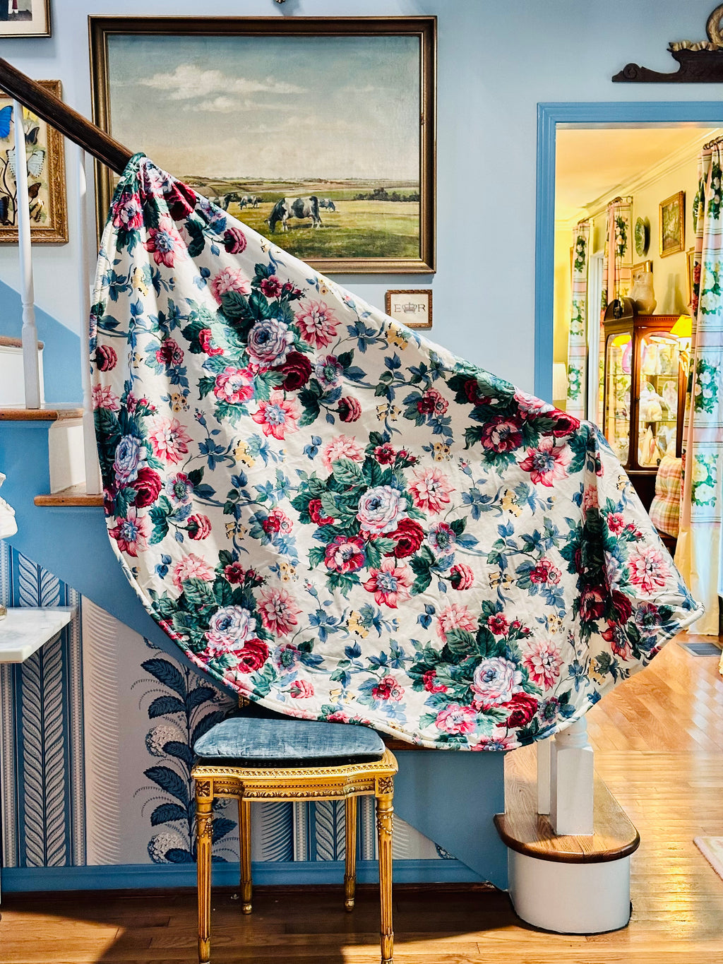 Custom Vintage Waverly Chintz Florabunda Roses Collection Round Table Cloth