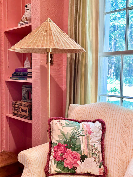 Searching for chintz is my sport of choice, & this pillow gets me a gold medal! Measuring 15x15 it is in excellent vintage condition. It has a lovely fringe trim & beautifully hidden Velcro closure. This pillow is one of those pieces that make such an impact!