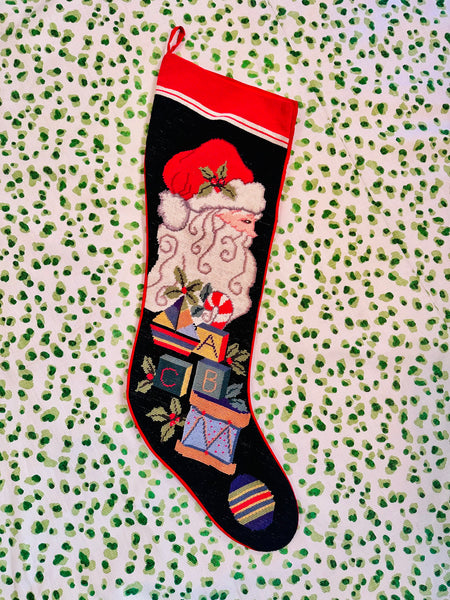Measuring in at a whopping 33 inches this is the largest needlepoint stocking I’ve ever come across! Beautifully stitched & finished and in excellent vintage condition! This will be she perfect finishing touch for your mantle for years to come!