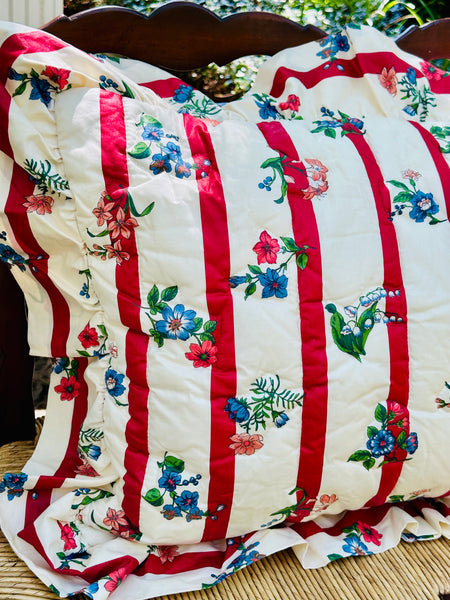 I absolutely adore these whimsical shams by Waverly! They truly have it all fun stripes & florals including Lilly of the Valley! They are very well made & the quilted like thick fabric does have a chintz sheen finish. There are a few spots scattered throughout the pillows I tried to photograph them all however it was difficult to spot them as they are so minor. These are perfect grandmillennial preppy classic pillows that will instantly add charm!